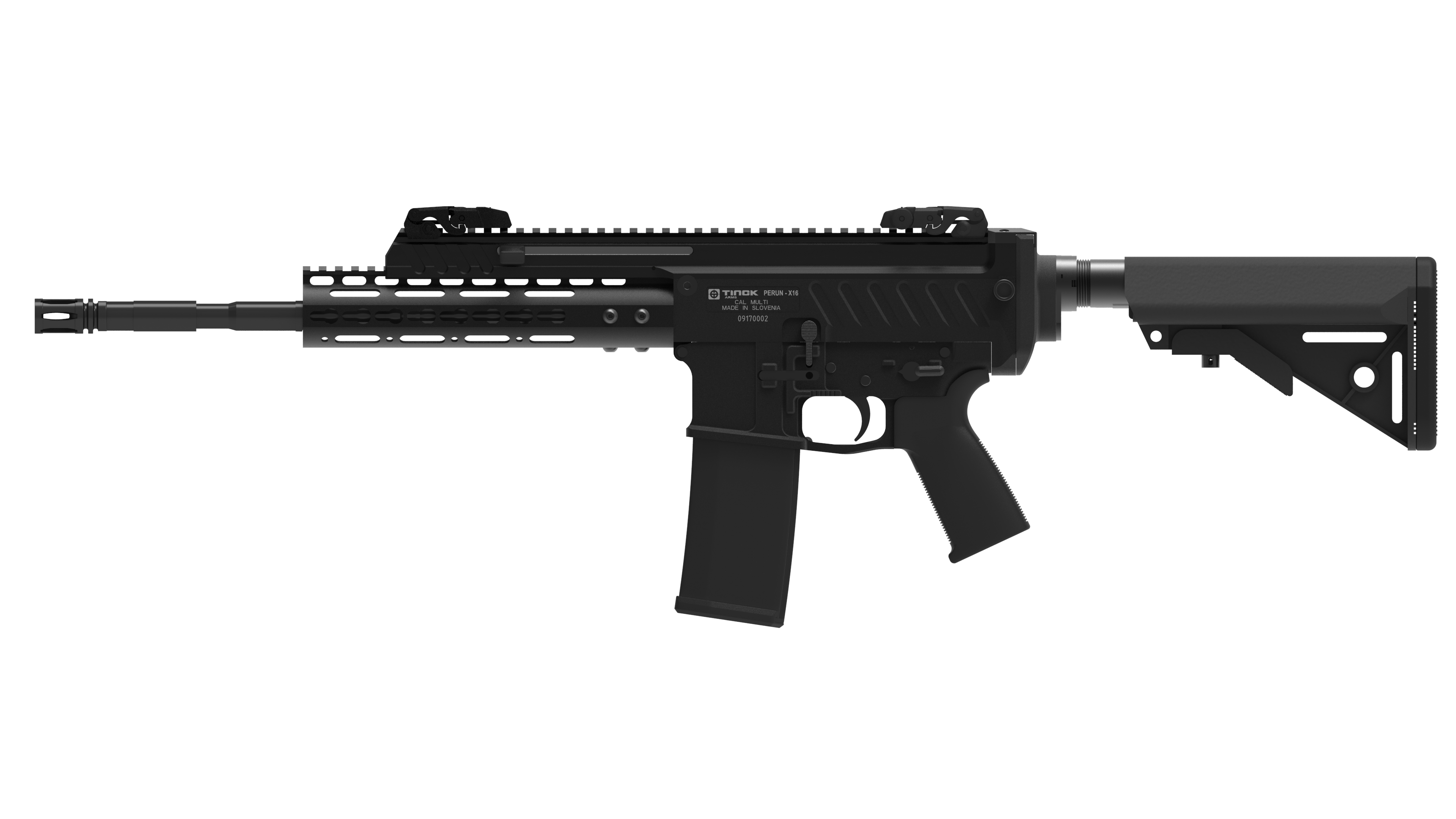 A szlovén (2007-ben alapított) Tinck Arms újdonsága egy moduláris öntöltő puska rendszer, mely az unalomig ismert AR-15 platformra épül. Az alumíniumból forgácsolt tokfelsőrész azonban előre helyezett (MP5-style) felhúzókart kapott, ide került a helyretoló rugó is, mert a válltámasz csöve a csőtengelyvonal fölé került. A fegyvercső szabadon konfigurálható és az eszköz lehet direkt gázelvételes vagy gázdugattyús működésű is. A tokalsórész helyére bármilyen szabványos AR-15 lower rögzíthető. A fegyverrendszer a képen látható .223 Rem. mellett 9 mm Luger pisztolykaliberű csővel/tokalsórésszel/szabad tömegzárral is szerelhető.