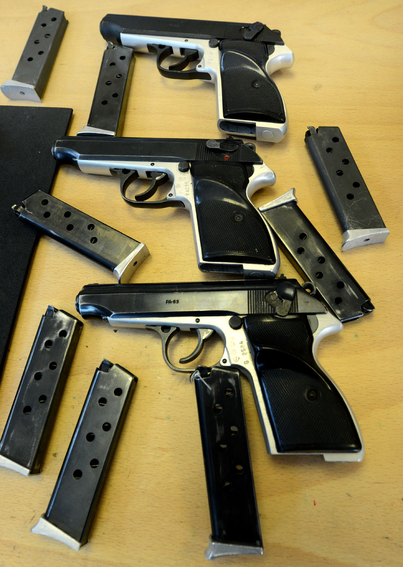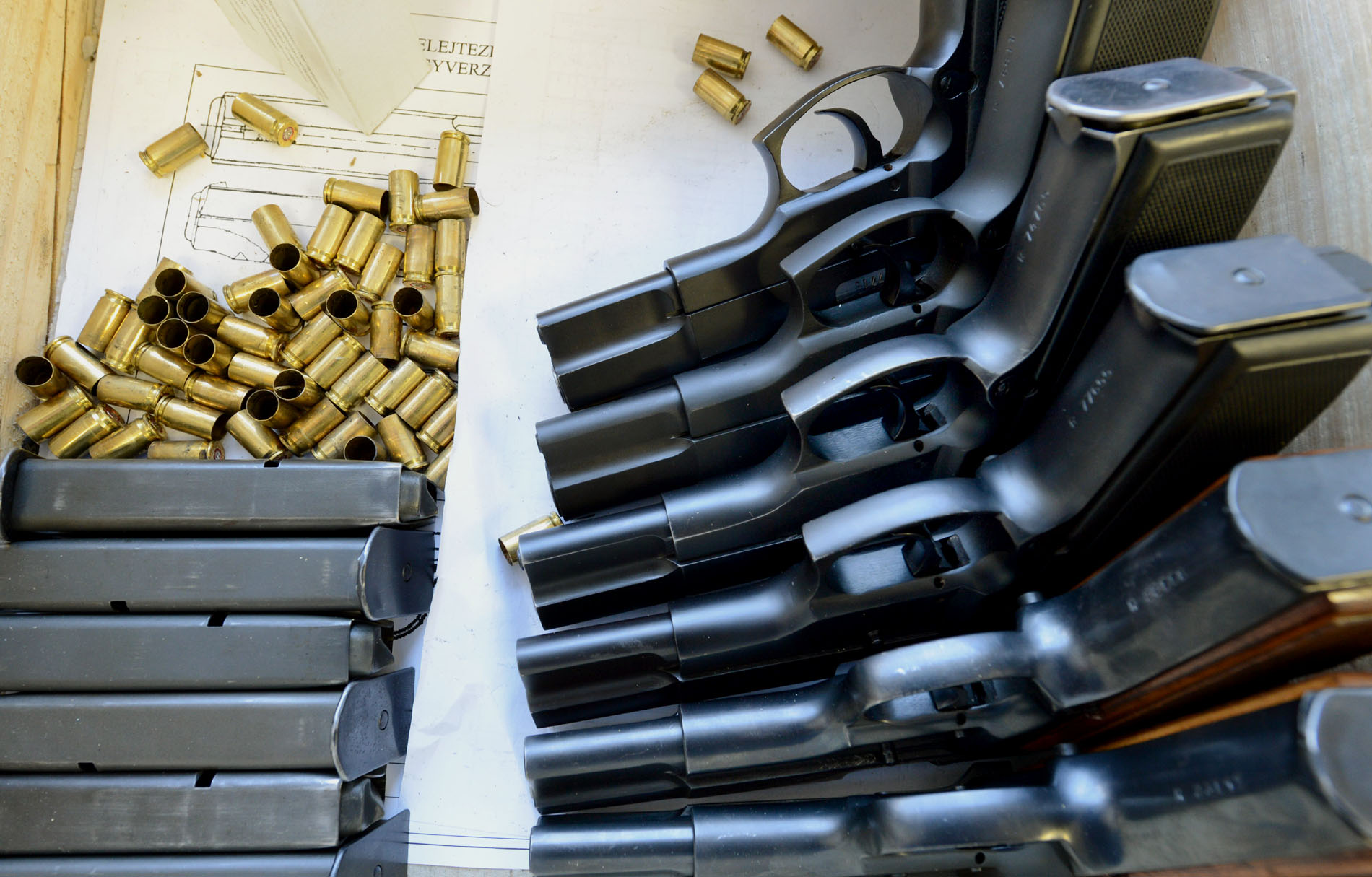 (A képeken FÉG P9R, PA-63, R78, IMI Jericho 941F pisztolyok és egy HK MP5K géppisztoly is azonosítható. ? A szerk.)