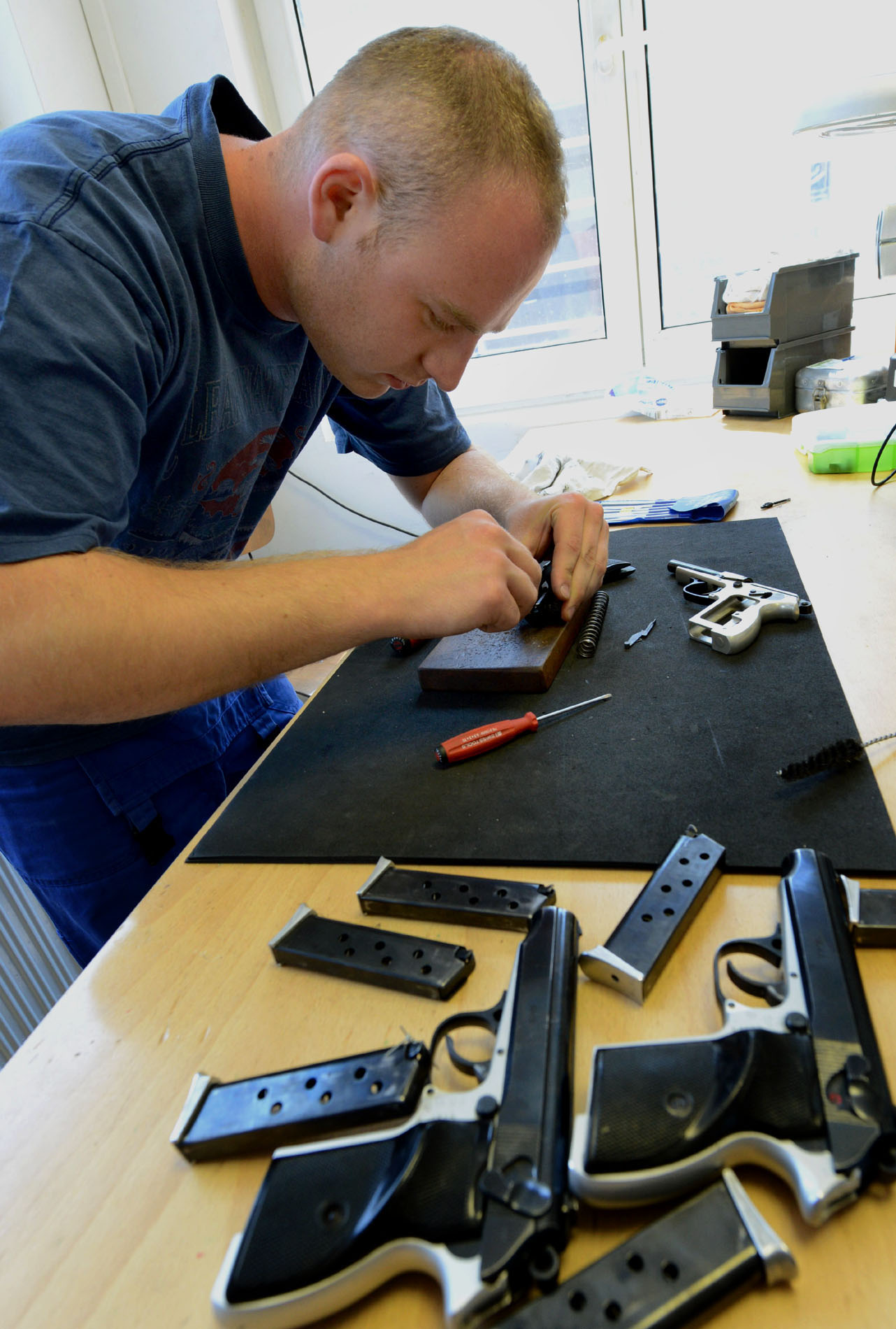 Az itt dolgozó magasan képzett szakemberek, sokoldalú, fegyverműszerészek, beérkező marok-, váll- és sorozatlövő lőfegyvereket gondos átvizsgálás után kezdik el javítani. A tisztítás után kerül sor a meghibásodott alkatrészek cseréjére, eltüntetik a kopások jeleit technológiai folyamattal, mellyel így szinte újjá varázsolják őket.