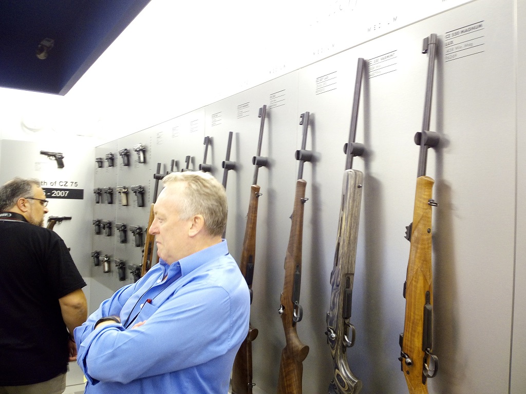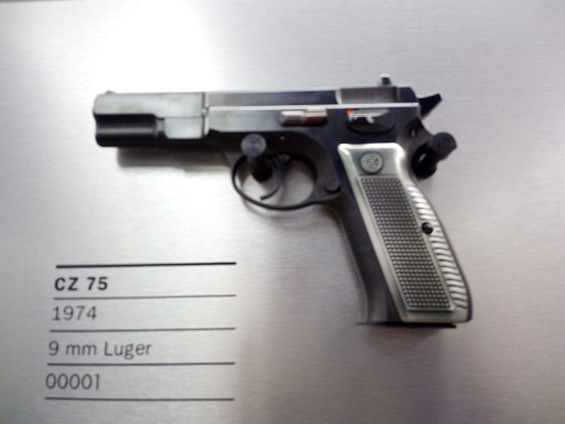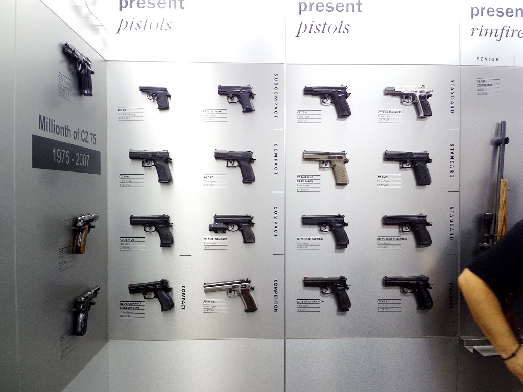 A gyárlátogatás után beengedtek bennünk a Grey Room-ba, azaz abba a szobába, ahol a szinte összes fontos itt gyártott fegyvert, azok prototípusait őrzik. Itt lehetett csattogtatni (!!!) az első CZ75-öt, meg az 1 milliomodikat…és most tartanak kb. 1,6 milliónál.