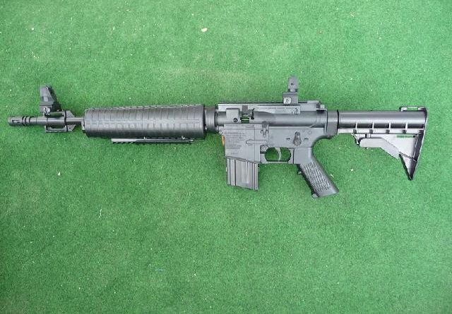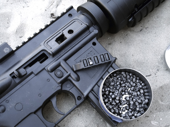 Az persze elsőre nyilvánvaló, hogy a fegyver nem 5,56×45 mm kaliberű gépkarabély, ehelyett a pneumatikus multi-pump légfegyverek közé sorolható be. Az ilyen kategóriás olcsó amerikai légpuskák ismerőinek nem meglepően, az előagyat kell lenyitni kb. 110 fokban, és visszacsukáskor préseljük össze a levegőt. Attól függően, hogy hányat pumpálunk, lesz erősebb vagy gyengébb a fegyver. Szobai vagy 8-10 méteres lövészethez 3 pumpálás bőven elegendő, ennél messzebbre 6-8 az ajánlott. Még így is éppen elérjük a 7,5 J-t ? megjegyzendő, hogy marketingokokból a gyártó által megadott magas lövedéksebesség a kb. 0,3 grammos acél gömblövedékekkel igaz csak.
