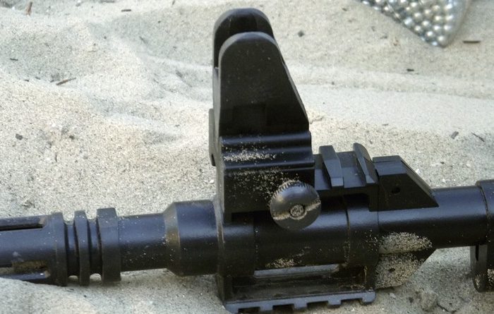 A valódihoz hasonlóak a szabványos méretű szereléksínek is, melyeket nem csak a tok tetején, de az előágy alján és a célgömb alatt is megtalálunk. Ide bátran lehet céltávcsövet vagy red dotot, esetleg fegyverlámpát applikálni, mivel nincs hátrarúgás, nincs rezonancia, nincs ami lerázná őket.