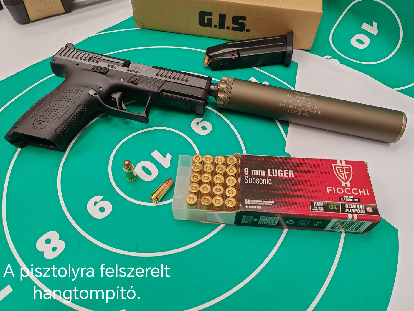 Ugyanis ekkora lőtávon már tényleg semmit nem látni a hangtompítótól. Fentiekből megállapítható, hogy a hangtompító felszerelése egyáltalán nem ront a fegyverünk pontosságán, csak a célzást nehezíti meg kissé. Lövés közben egyébként egy érdekes, hullámzó mozgása van az orrnehéz és felettébb hosszúvá vált fegyvernek. Az éles durranásból pedig – szubszonikus lőszer használatával – inkább egy hangosabb csattanás hangjává szelídül a torkolatdörej. Mivel szabadtéren történt a lövészet ezért a hangsebesség feletti Geco lőszerrel – a fültokot levéve – sem volt zavaró a lövések hangja. Ehhez tudni kell, hogy a 9×19 mm-es lőszer kb. 160 dB hanghatást produkál a 112 mm-es csőhosszból lőve amiből a G.I.S. hangtompítója nagyjából 32 dB-t képes levenni. Az így kapott érték 130 dB körül mozog, ami az emberi fül fájdalom küszöbét és halláskárosodási határát is jelenti, mely elsősorban zárt térben lehet káros. Szabadtéren ez még nem annyira zavaró, de természetesen a hallásvédelem így is ajánlott. Két ember közötti beszélgetés egyébként kb. 60 dB zajszintet jelent.