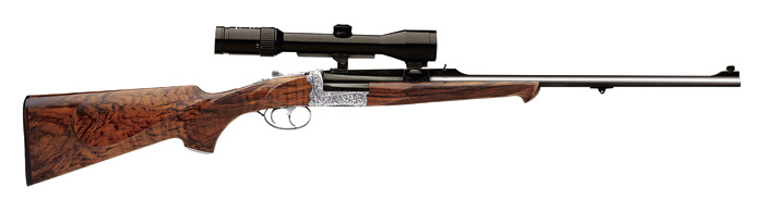 A fegyver az ?egylövetűsége? miatt, kevésbé alkalmas vaddisznóhajtásokra, vagy a sebzett nagyvad utánkeresésére. Drágák, piaci értékük, 5 000- és 30 000 Euró között van, de esetenként még ezt is meghaladja az áruk