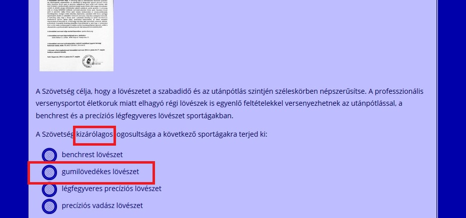 Ami a több tízezer érintett okán leginkább felkorbácsolta az indulatokat az az volt, hogy az új „MAGYAR PRECÍZIÓS LÉGFEGYVERES ORSZÁGOS SPORTÁGI SZÖVETSÉG” honlapján (www.maposz.sport.hu) szerepelnek a gumilövedékes fegyverek is. Ráadásul annak ellenére KIZÁRÓLAGOSSÁGOT megjelölve az ezekkel való lövészetben, hogy nevük alapján „precíziós légfegyveres” sportokról van szó.