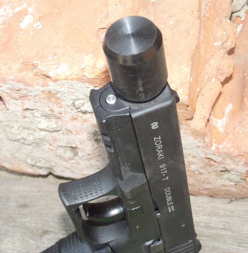 Adódott hát az ötlet, hogy egy valamivel hosszabb menetvédőbe a kb. 6 mm-es kapszulának megfelelő furat kerüljön (előtte pedig némi szűkítés, hogy szemből betöltött ólomlövedék ne lehessen kilőhető). Ezzel tovább növelhető az első lövésre eső kijuttatott hatóanyag mennyisége, illetve lehetséges „vegyes töltet”, ha CS-patronnal küldjük ki a kapszulacin peppertöltetét. Ez ráadásul így öntöltő modellekhez is lehetővé teszi a kapszulacin használatát. További pluszként pedig némi plusz szűkítéssel javítja a megbízhatóságot (ma már például az Umarex számos öntöltő gázpisztoly-modelljébe gyárilag tesz kitekerhető szűkítést).
