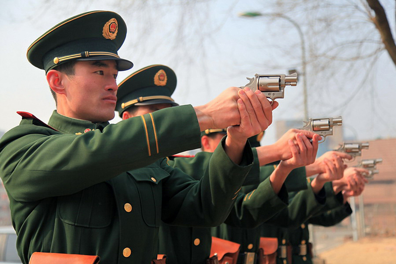 A kínai rendőrök többsége még mindig lőfegyver nélkül, jellemzően egyszerű gumibottal vagy tonfával látja el szolgálatát, az országban a lőfegyvere bűnözés igen alacsony szintű, ugyanakkor az utóbbi években számos késes mészárlás és terrorcselekmény is történt. (Valószínűleg a nyugati médiába lejutottnál sokkal több.)