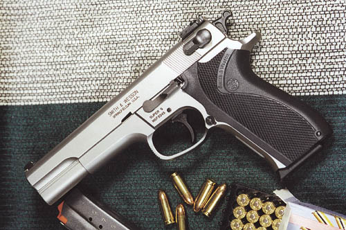A Smith and Wesson céget 1852-ben alapították, azonban ? meglepő módon ? öntöltő pisztoly nem szerepelt gyártmánypalettájukon egészen az 1950-es évekig. 1955-ben viszont a cég bemutatta az első USA-ban készült, 9 mm Parabellum lőszert tüzelő öntöltő pisztolyt, a Model 39-et. Ez a fegyver teljes egészében saját konstrukció volt, noha a korabeli sajtó úgy jellemezte, hogy a Browning Hi-Power összeházasítása a Walther P38 elsütőszerkeze-tével. Érdemes megjegyezni, hogy ez a double action elsütőszerkezetű pisztoly vált ? a műanyag tokosok kivételével ? minden későbbi nagy kaliberű Smith and Wesson öntöltő maroklőfegyver alapjává. Természetesen azóta ennek a fegyvernek számtalan továbbfejlesztése, illetve altípusa, változata látott napvilágot. Legjelentősebb ezek közül a Model 59 volt, mely azonos az M39-cel, de kétsoros, 14 töltényt befogadó tárral rendelkezik (az M39 8+1 lövetű volt). Az M59 azért is érdekes fegyver számunkra, mert a magyar FÉG fegyvergyár ezt másolva hozta létre a P9R típuscsaládot, ezért az itt bemutatásra kerülő Super9 megjelenése, illetve szerkezeti megoldásai ismerősek lehetnek a hazai közönségnek.