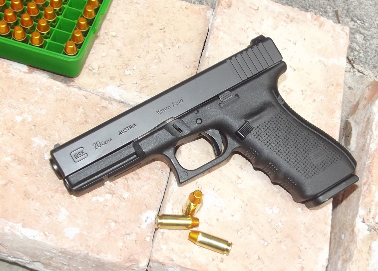 Az “öntöltő magnum” – azaz Jeff Cooper pártfogoltja, a 10 mm AUTO lőszerhez készült nagy tokméretű Glock 20 legfrissebb változatát, a Gen4-et használtuk egy kis játszadozásra. Egyelőre 800 joule+ környékire töltött lőszerekkel, így még némi akadály is előfordult, de a nyeres erő mégis kifejezetten uralhatónak bizonyult. A szórásképpel és a megbízhatósággal nem voltunk elégedettek, de a rombolóhatással a céltárgyakon annál inkább.