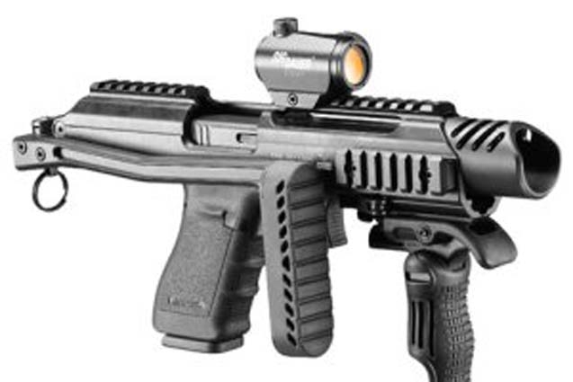 A Kaliber 2010. szeptemberi (149.) számában Magnum Uram kolléga tollából részletes cikket is olvashatnak ezekről jópofa kis kütyükről. A karabély-konverziós szettek lényege, hogy egyetlen lőfegyver fődarabot sem tartalmaznak, vagy annak módosítását sem igénylik, mégis pisztolyunkból kellemes kis öntöltő karabélyt faragnak. Na persze Glock 18-cal lennének igazán hasznosak.