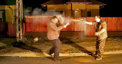 Lassan 10 éve volt az első “Totónak GÁZT!” Humán Tesztünk, akkor Röhm RG89 gázrevolverből kapott 4 lövést, CS-PV felállásban a HŐS önként vállalkozó tesztalanyunk. Most az új orosz A+A Pioner eszközt próbáltuk ki rajta, 18×51 mm BAM-OC paprikatöltényekkel. Ezekben 4 cm3 6%-os OC töltet van, melyet csappantyú által gyorsított dugattyú lő ki folyadéksugár formájában. A teszt során fix, kimért 2 méter lőtávról a hatóanyag effektívitását teszteltük. Mint látható gyakorlatilag villámcsapásszerűen hatott, a reflexszerűen ráküldött második lövés (ráduplázás) a feltartott karok kötött az arc/fej oldalát érte. Totó ismét erősen harcképtelenné vált.
