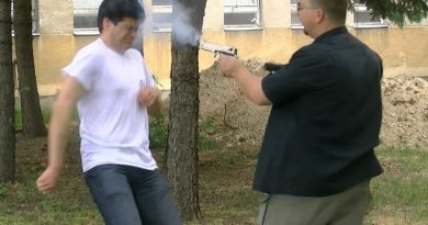 Az ördögszekér egy kerekeken guruló lőlap, amit a segítő váratlanul nekifutva húz a lövész irányába, akinek minél gyorsabban kell minél több találatot bevinnie. A gyakorlat mindig rejtett viselésből indult (kivéve a kifejezetten otthonvédelmi eszközök esetében - Onesta például), a hétköznapokon is hordott tokból és hordmódból. Az eredmények igen vegyesek voltak, de rengeteg tanulságot le tudtunk vonni. Az igazán gyakorlott lövészek már 3 méterről be tudtak vinni a fent leírt körülmények között egy találatot, de 7 méterről a két ördögszekérre leadott dupla (tehát összesen 4 lövés) sem volt lehetetlen. Az átlagos gyakorlattal rendelkező lövészek 7 méteres távról akár a gyengébb oldalon viselt backup fegyverrel is le tudtak adni legalább egy lövést. Persze nem a fent leírt eredmények voltak a kizárólagosan jellemzőek. Volt tokkal együtt rántás, fegyver után kapálózás, rossz ráfogás, kitérés elmulasztása (az ördögszekér nem áll meg magától, de a támadó sem állna...). Egy Guardian Angel pepperkilövő eszközt is kipróbáltunk 3 méterről, kézben tartva. A mozgó célpontot ért első lövés a lőlap "haját" kócolta össze, a második pedig éppen csak súrolta a szélét. A tapasztalatok szerint az eszközben lévő hatóanyag igen erős, de nagyon kevéssé terít - mozgó, vagy kis célt (kutya pofájára például fokozottan igaz) eltalálni nagyon nehéz vele, főleg az irányzék és a markolat hiánya miatt. A tanulságot mindenki levonhatta: a hordani kívánt fegyverrel hetente rá kell szánni pár percet a szintentartó gyakorlásra, a hordani kívánt tokból, normál hordmódból - tehát nem nyílt viselésből. A másik fontos tanulság, hogy nem elég csak a rántást gyakorolni, a kitérést is be kell égetni. Jó ötlet pufferpatronokat gyártani, hogy magát a sütést is gyakorolni tudjuk. Erre azért van szükség, hogy megóvjuk a fegyvert az üres csettegtetésből származó meghibásodásoktól (ütőszegtörés, szélsőséges esetben ütőszegház kiszakadása, stb.). Elkészítése otthon is pár perc alatt megoldható: Egy ellőtt töltény csappantyúját üssük ki, majd bőrlyukaszóval üssünk ki gumilapból egy darabot. Az így kapott kis gumikorongot ragasszuk be a csappantyú helyére, végül egy éles szikével vágjuk síkba a hüvelytalppal. Kísérletek inert töltetű kapszulacinnel