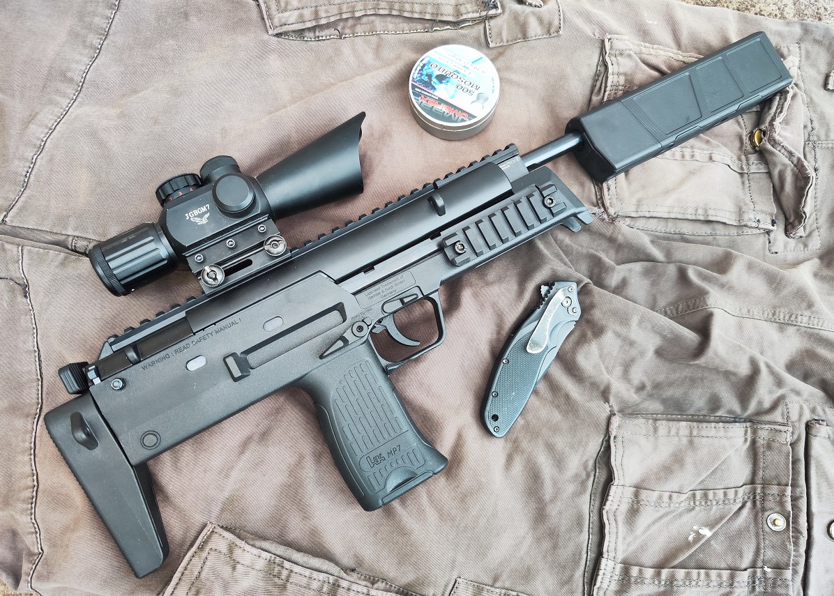 Amint arról már korábban is írtunk, az élethű külsejű, többlövetű CO2-os légfegyverek után pár éve megjelentek a klasszikus csőletörős, rugós-dugattyús légfegyvereket izgalmasan felöltöztető hobbi-légfegyvermodellek. Ezek közé sorolható az Umarex távol-keleten gyártatott Heckler und Koch MP7 alakú légpuskája, illetve testvérmodellje, amelyet Mini UZI-nak öltöztettek fel.