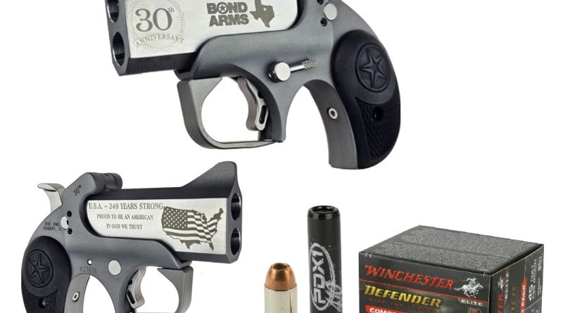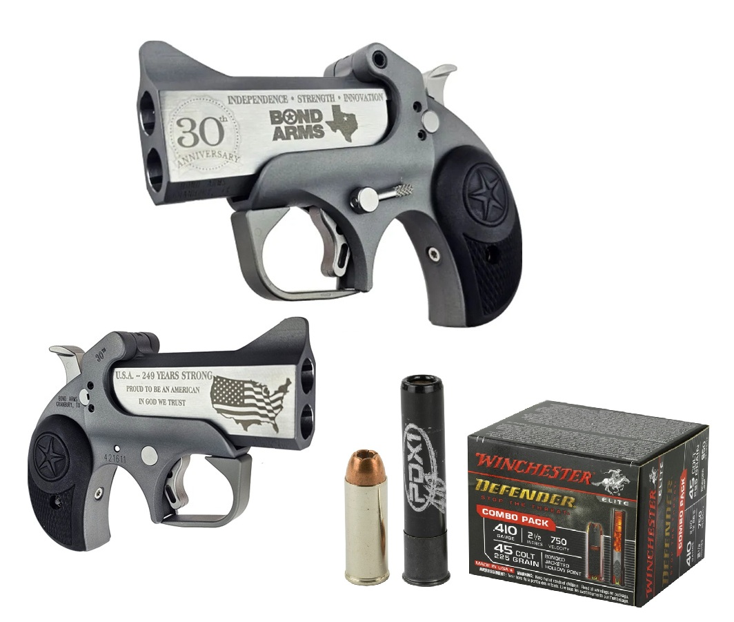 Az amerikai Bond Arms a variálható kaliberű derringerek egyik legjelentősebb gyártója, és idén lettek 30 évesek, ennek kapcsán Bond Arms 30th néven egy ennek megfelelően gravírozott derringert mutattak be és árusítanak idén. A kétlövetű fegyver .45 Colt és .410/76 sörétes kaliberű (huzagolt csövű), a csőpár oldalán nincs bemélyedés, így ide bal oldalra a 30. évfordulóra utaló feliratot (Independence, Strength, Innovation – Függetlenség, Szilárdság, Innováció – Bond Arms 30. évforduló) lézegravíroztak, a másik oldalra pedig az USA 249. évfordulóját és néhány nemzeti jelszavat írtak. Texasiak, na.
