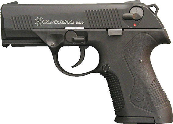 Újabb kétféle típus kapható mától Magyarországon is az új török gázpisztolygyártó, a Carrera termékei közül. Az Beretta PX4 Compact formáját másoló RS30 DA/SA elsütőszerkezetű, forgó szánbiztosítóval, de csőretöltve biztonságosan nem viselhető, kétsoros táras típus, acélbetétes kakassal, kifejezetten masszív fegyver. Lényegében a gyártó GT50 típusának kompaktabb, átfazonírozott kivitele.