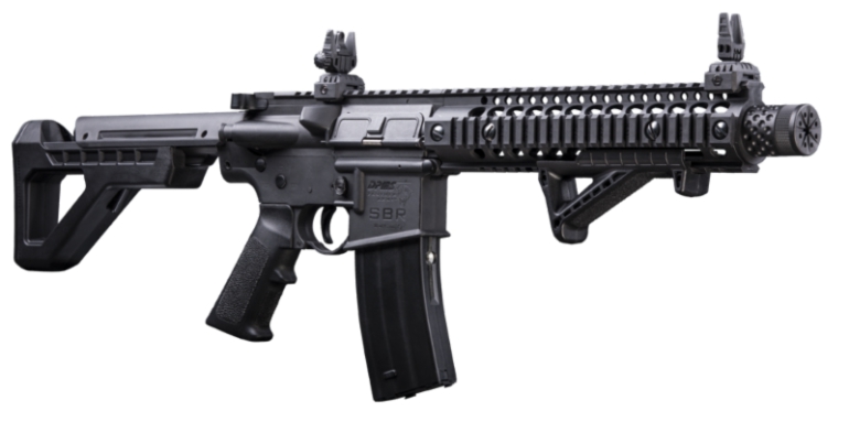 Az amerikai Crosman (vélhetően kínai airsoft fegyverre alapozott) újdonsága a DPMS SBR CO2 légpuska, mely külsőre egy rövid csövű M4 gépkarabélynak néz ki, és valóban alkalma sorozatlövésre. A 4,5 mm-es acél gömblövedékeket 1400 lövés/perc tűzgyorsasággal lövi ki, gas-blow-back rendszerű, energiaforrása a tárba elhelyezett 2×12 grammos CO2 patron. Tárkapacitása 30 db lövedék.