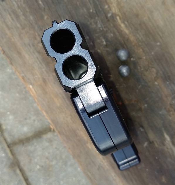 A teljes fegyver CNC-megmunkálással készült, a tok 7075 T6 alumíniumötvözet, a csőköteg anyaga acél, és acélból van a cserélhető tűzfal és a komplett elsütőszerkezet is. A kétlövetű elöltöltő pisztoly csöve a csappantyúzáshoz és a lőkúp tisztításhoz kiszereléséhez felnyitható.