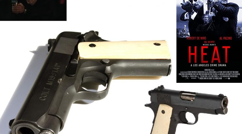 A legendás 1995-ös Robert DeNiro – Al Pacino rabló-pandúr film, a HEAT (magyarul: Szemtől szemben) egyik “főszereplő pisztolya” lett most eladó az USA-ban. Ezt az Al Pacino alakította Vincent Hanna hadnagy viseli és használja a film csúcsjelenetében is (de nem szpojlerezünk, ha valaki még nem látta volna). A fegyver egy Colt M1991A1 Compact Model, eredetileg .45 ACP kaliberben, de immár vaktöltényes színházi fegyverré alakítva. (Korábban a csődbe ment Stembridge Gun Rentals készítette és adta bérbe a filmhez.)