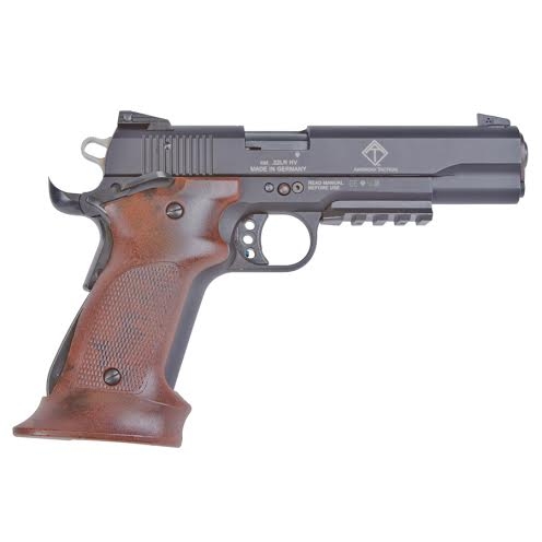 A német German Sport Guns a .22 LR kaliberű M1911-gyakorlópisztoly-családjának új tagját mutatta be. A GSG 1911 Target 5″-es, menetes végű csövet, szereléksínt, és anatomiai fa sportmarkolatot kapott. Persze ettől még a spiáter fődarabos szabad tömegzáras pisztoly inkább játszós fegyver, mint valódi sportgép. Amerikai ára (430 USD MSRP) is ezt támasztja alá.