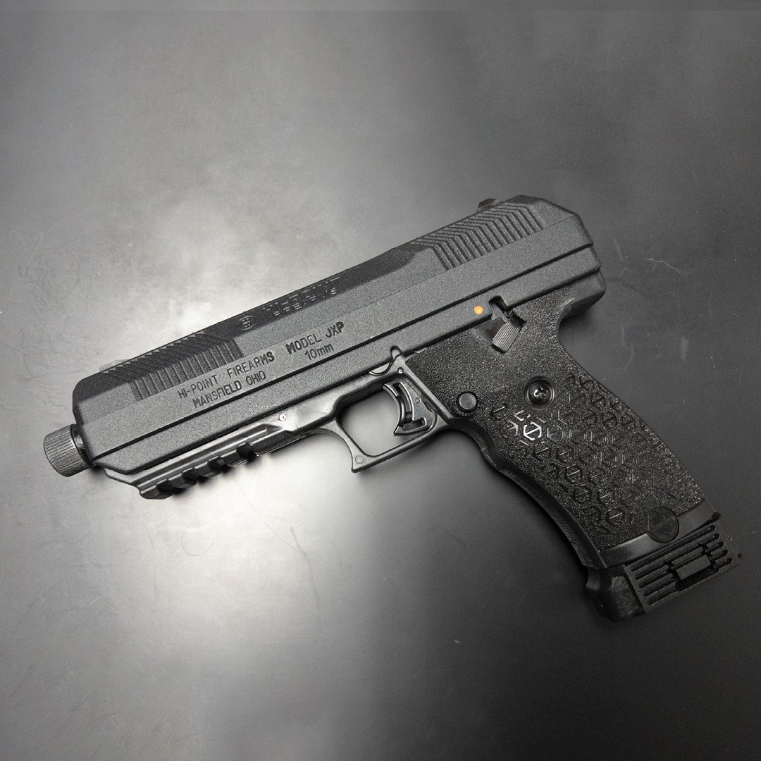 Az olcsó (de általában működő), rövid élettartamú, faék egyszerű pisztolyokat gyártó Hi-Point újdonsága a JXP10, amely a bivalyerős 10 mm AUTO lőszert tüzeli, méghozzá a gyártó többi termékéhez hasonlóan szabad tömegzáras szerkezetből. Nagyon erős helyretoló rugó és nagyon nagy tömegű, falvastagságú szán a trükk. A szán anyaga acélbetétekkel megerősített spiáter. A fegyver csak single action ütőszeg típusú elsütőszerkezetet kapott, manuális tokbiztosítóval, üres tömege 1300 gramm feletti, csőhossza 5,2″.