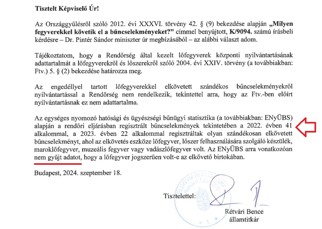 Egy ellenzéki országgyűlési képviselő nemrégiben feltett egy kérdést a BM felé, hogy milyen fegyverekkel követik el hazánkban a bűncselekményeket, és azon belül mennyi a legálisan tartott és illegális lőfegyverek aránya.