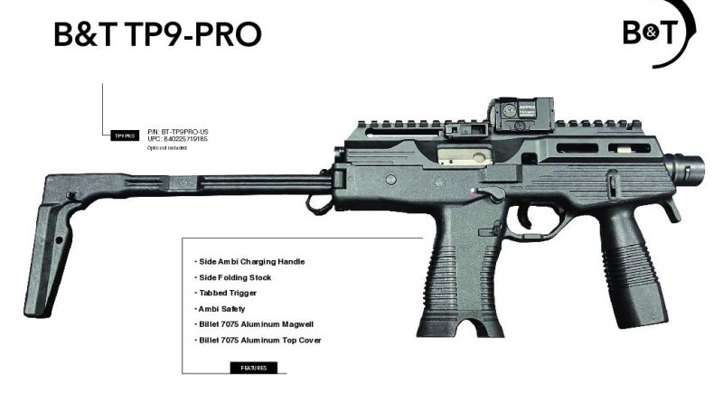 A svájci B+T újabb változatát hozta ki a TP9 (Tactical Pistol 9 mm Luger) PDW-fegyvernek, TP9-Pro jelzéssel. Az egykor Steyr TPP/SPP modellként indult forgócsöves reteszelésű, műanyagtokos eszköz lassan a fejlesztésének harmadik évtizedébe lép.