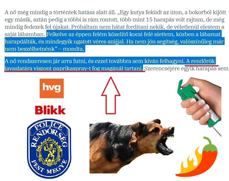 Ha egy következő kutyatámadás paprikaspray-s elhárítása után a sértett rendőri segítséget kér, akkor ő lesz az első aki ellen eljárást indít a Rendőrség.