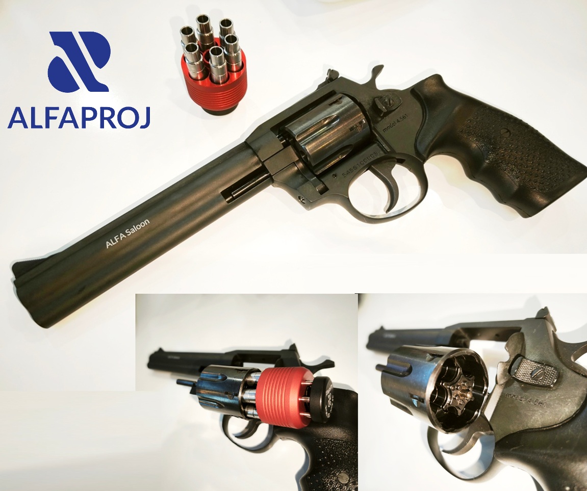 A cseh Alfaproj – válaszul arra, hogy Csehországban engedélyhez kötötték a korábban 2 évig csak bejelentéshez kötött, energiakorlát nélküli flóberteket – új hobbi céllövő revolvereket mutatott be az IWA2026-on. A szabadon tartható légfegyvernek minősülő Alfa Saloon revolverek a gyártó .22 LR/.22 WMR/.38 Special cinköntvény tokjára épül, dobja, elsütőszerkezete, csőbetétje, tűzfala természetesen acél. A revolver az ismert LEP/Brocock felpumpálható/tartályról/kompresszorról tölthető patronokkal üzemel, melyek elejébe kerül a légfegyverlövedék, és melyeket a dobba úgy kell betölteni, mint egy normál revolverbe lőszert.