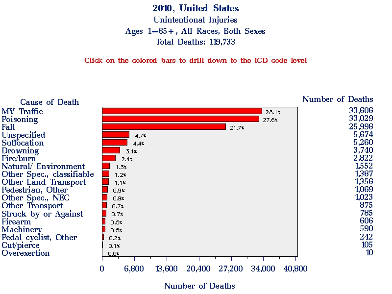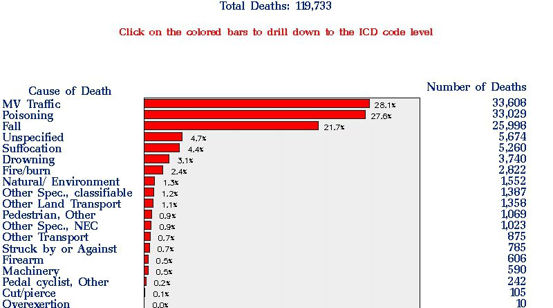 Az Egyesült Államokban mintegy 300 millió lőfegyver van magánkézben, minden harmadik háztartásban van fegyver. Ennek ellenére a mellékelt – frissnek tekinthető – 2010-es adatsor alapján a baleseti halálokok között mindössze fél százalék a fegyverbalesetek részesedése. 119 ezer esetből 660 mindössze.