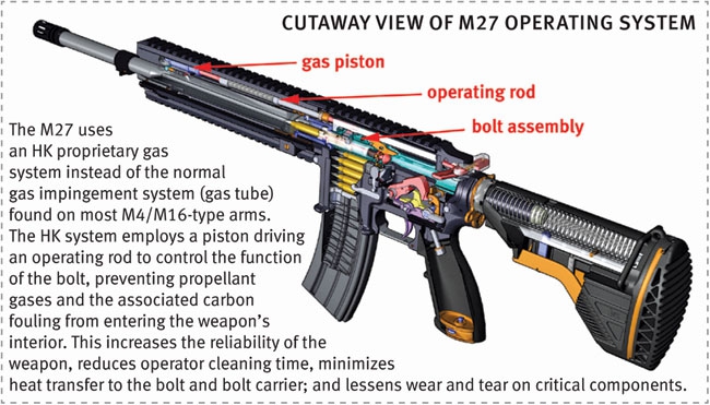 A TFB híre alapján az amerikai tengerészgyalogság (US Marine Corps) újabb 11 ezer darab Heckler und Koch M27 IAR golyószóró lehetséges szállítására vonatkozó megkeresést küldött ki az ipar számára (RFI – Request for Information). A fegyver a HK416 gépkarabély nehéz csövű verziója, és ezzel váltották le részben az M249 SAW (FN Minimi) golyószórókat. Az M27 gázdugattyús, short stroke gázdugattyús 5.56×45 mm NATO kaliberű sorozatlövő fegyver, táras adogatással, lényegében egy gépkarabély. Emiatt sokan felvetik azt a kérdést, hogy a Marine Corps nem ilyen álcázott módon kívánja lövészcsapatainál teljesen lecserélni az M16/M4 fegyvereket? A teljes igény valahol 40-50 ezer fegyver között lenne – tehát még 3-4 ilyen kisebb berendeléssel áthidalható. Ellene szól, hogy az M27 darabára igen magas: 3 ezer dollár körüli.