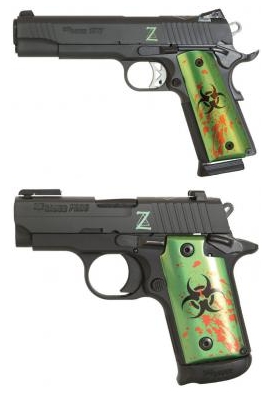 A zombi-témakör elmebaja is erősen fertőző, most az amerikai SIG Sauer a Bill Hicks & Co. Ltd. számára készített limitált Zombie Edition-t az amerikában gyártott .45 ACP M1911 és .380 ACP P238 pisztolyokból.