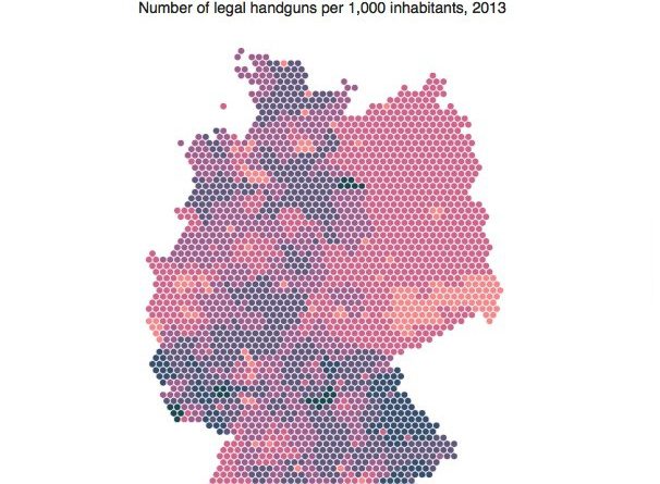 A Zeit.de a német újraegyesítés kapcsán közölt egy érdekes inforgrafikát közölt a 2013-ban legálisan tartott lőfegyverek eloszlásáról a Szövetségi Köztársaságban.